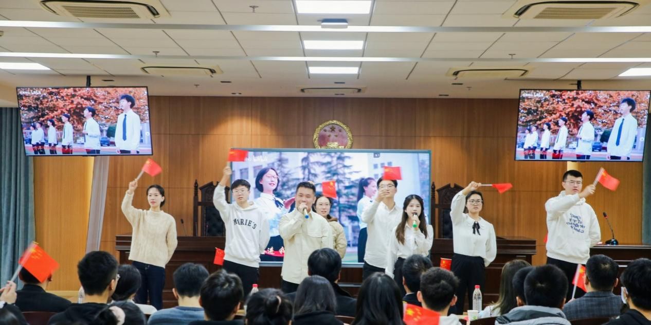 法,国之权衡也,时之准绳也。作为新时代青年,应当深入学习了解宪法,弘扬宪法精神,维护宪法权威。法学院周旭、夏子轩、 吴帆、连顺祥、魏红帅、杜程程、颜桂珍、王奕然等八位同学合唱歌曲《宪法伴我们成长》,悠扬的歌声为开幕式画上圆满的句号。