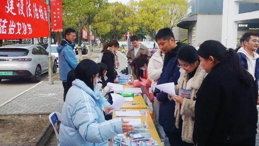 开幕式后的当天中午,法学院协同保卫处及学生社团律舟法律援助社、知识产权协会、青法团等在东区食堂、水秀食堂前开展了普法宣传、法律咨询和反诈骗宣传活动。活动现场设立法律咨询台,并开展《大学生法治思维量表》填写和解答、宪法知识竞答、发放《2023年国家宪法日暨宪法宣传周宣传册》《反电诈漫画宣传册》等宣传资料等,得到了学校师生的响应和积极互动。