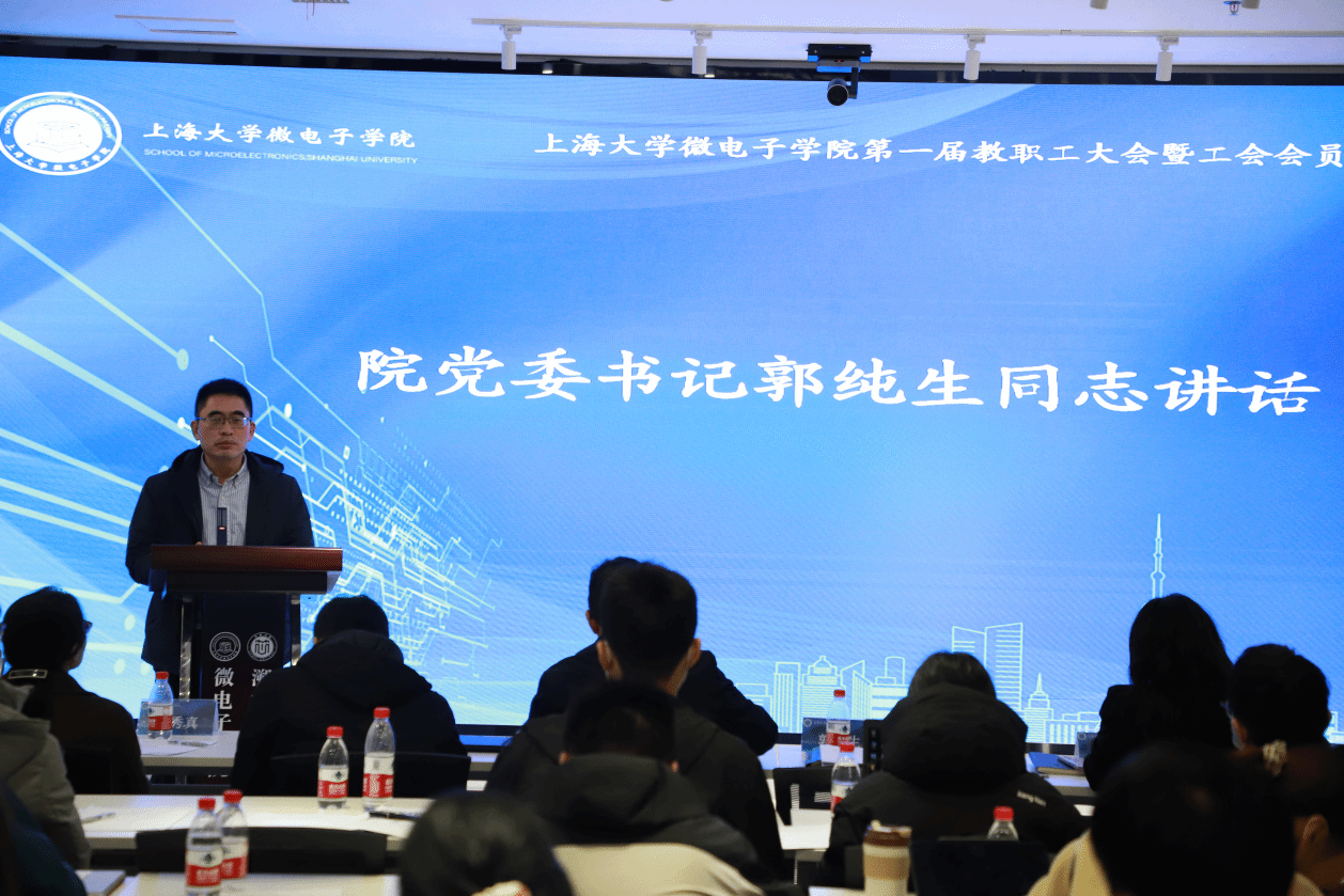 12月12日下午,微电子学院第一届教职工大会暨工会会员大会第三次会议在微电子学院A楼101会议室召开。微电子学院班子成员及教职工参加会议。会议由学院党委副书记、副院长,分工会主席袁铭同志主持。