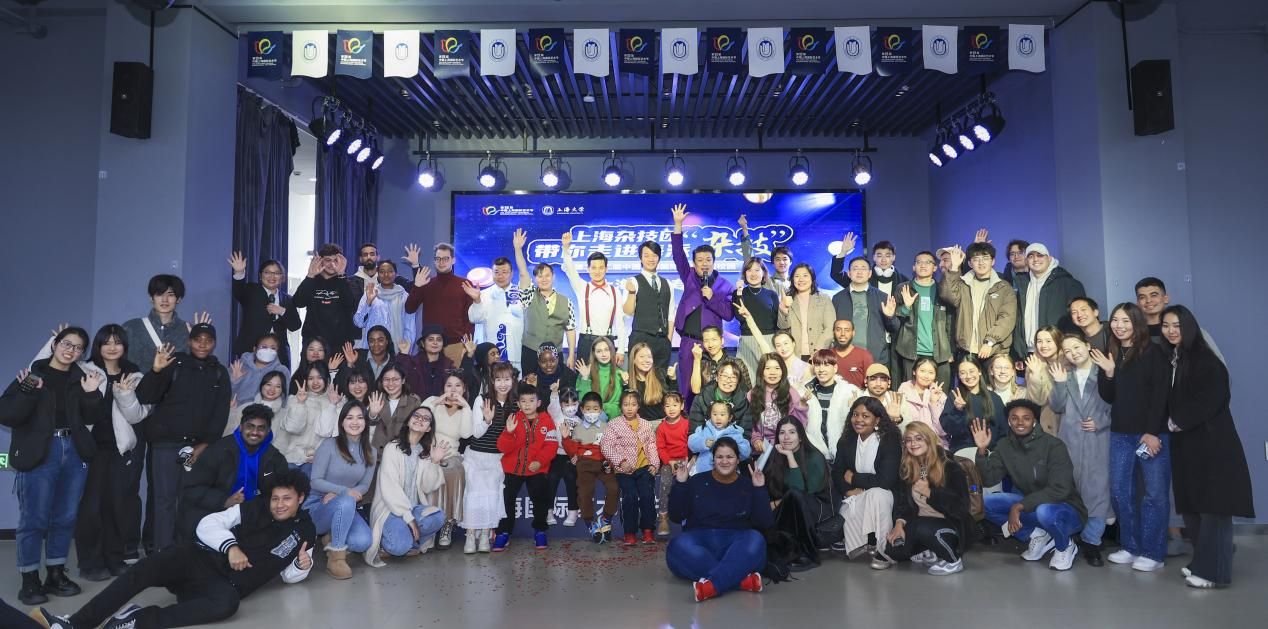 1月5日,中国上海国际艺术节进校园新年首场活动——上海杂技团带你走进海派“杂技”在永利集团88304官网宝山校区南区青春剧场开演。本次活动由永利集团88304官网宣传部、国际教育学院承办,也是国际学生“海派文化”工作室为中外学生呈现的开年重头戏。活动现场人头攒动,聚集了近50个国家的180余位中外师生。中国上海国际艺术中心党总支副书记、副总裁杨佳露,永利集团88304官网党委宣传部副部长、融媒体中心主任吴铭,永利集团88304官网国际部党委书记王丽娜莅临现场观演。活动由国际学生“知华导生”、管理学院22级硕士生陈裕子安和上海杂技团优秀青年魔术师周舫联合主持。