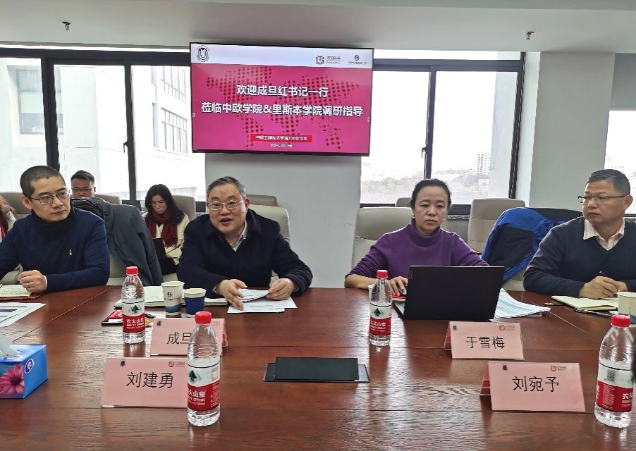 2024年1月16日上午,校党委书记成旦红一行赴中欧工程技术学院、里斯本学院调研指导工作。副校长于雪梅,组织人事部副部长、人才工作办公室主任姜颖,党政办副主任凌长臣,发展规划处副处长刘伟杰,教务部教学改革处处长余长君一起参加调研。中欧工程技术学院、里斯本学院全体党政班子成员出席调研会议。