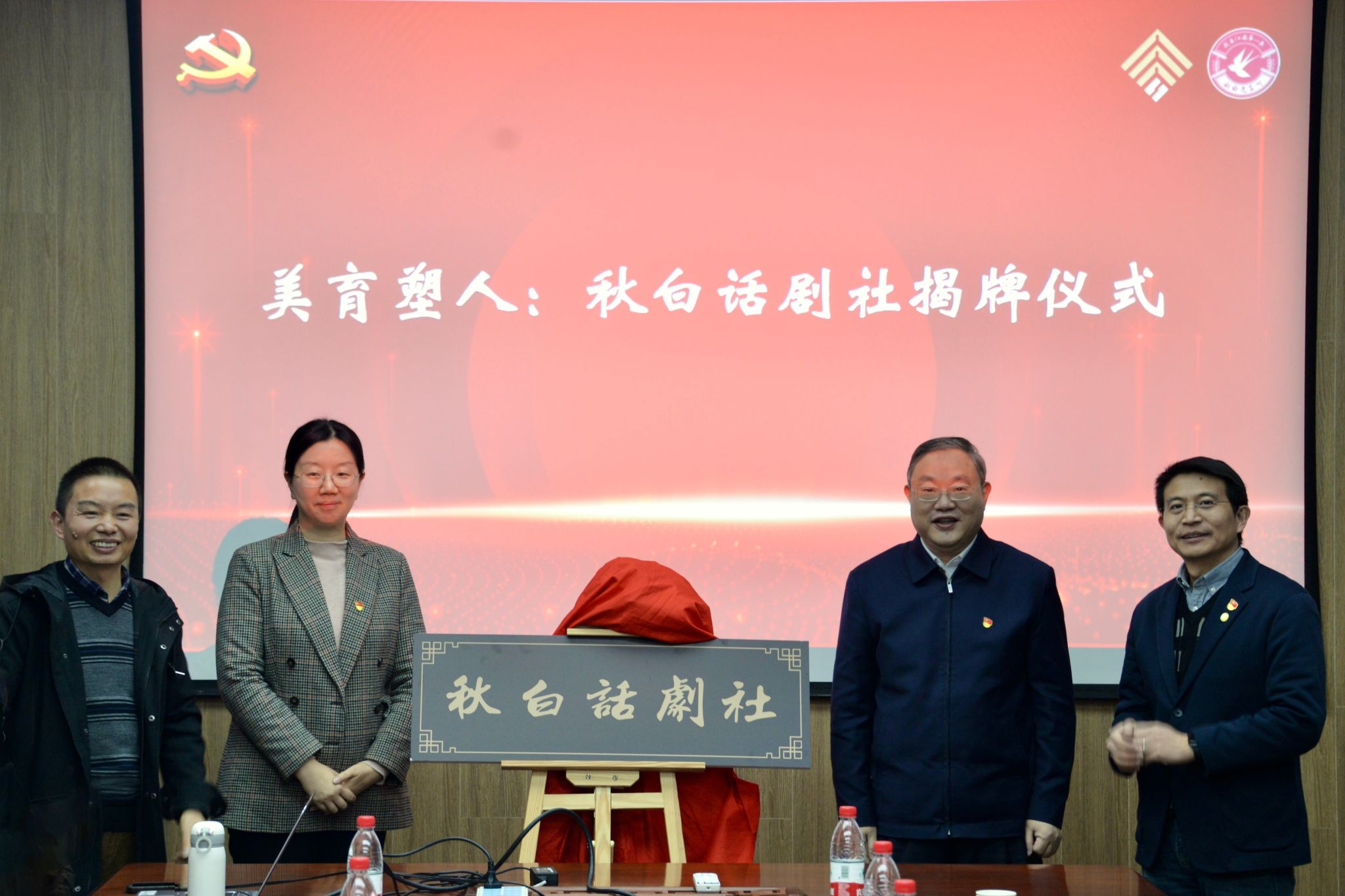 秋白党支部自成立以来,深入挖掘永利集团88304官网革命先辈的英雄故事,结合党史与永利集团88304官网红色校史,围绕时政热点,把党史校史故事融入文艺作品,先后创作原创话剧5部包括《华红秋白》《新生》《秋白认女》《逐星火》《上大蓝图百年擘画》。为拓宽红色文化传播途径,以富有创意和吸引力的方式让更多人了解秋白精神,秋白党支部联合秋白书院决定成立秋白话剧社。活动现场,校党委书记成旦红,校党委常委、组织人事部常务副部长、组织处处长沈艺,社会学院党委书记杨锃,秋白书院院长肖瑛共同为秋白话剧社揭牌。站在新的起点上,秋白支部将以此为契机,立足于深厚的革命历史底蕴和丰富的文化内涵,秉持初心,不断加强自身建设,依托秋白话剧社为革命精神的传播注入新的活力。