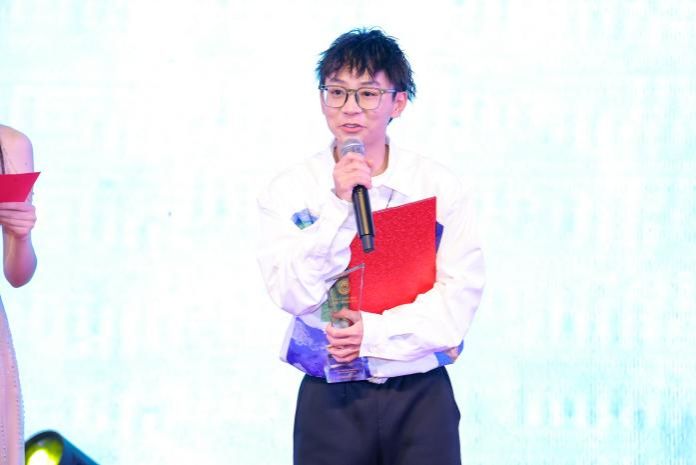 在颁奖采访环节,“文体之星”获得者,来自乌兹别克斯坦的管理学院22级硕士生OTABEK UMARALIEV(李硕)分享了他个人在音乐中成长的经历:从在校园里自弹自唱,到与好友组建乐团“Over Tune”,感受到的是“音乐使人放松,能给同学们带来快乐”。当成为国际学生“海翼”合唱团团长后,除了多了份责任,更重要的是“世界上有很多种语言,但音乐是大家共同的语言。通过音乐,把各个国家的同学团结在了一起;坚持训练不容易,但美妙的和声让人着迷”。他表示,感谢学校为他的兴趣插上了飞翔的翅膀,让他的小小爱好,最终有机会凝聚一个大大的团体。