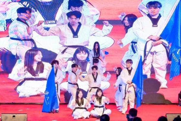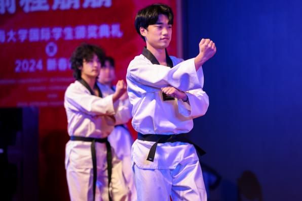 在武术的感染里,我们领悟精神。体育文化工作室太极拳俱乐部的学员现场带来《陈式太极拳》表演,展示中华武术瑰宝,尽显深厚文化底蕴;韩国留学生带来的《韩国跆拳道》表演充满韩国武术的热血与激情,又不乏青春与活力。