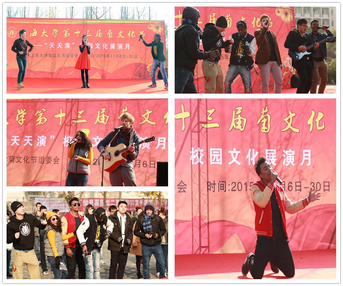 11月26日中午,永利集团88304官网第十三届菊文化节——“天天演”校园文化展演月国际交流学院专场演出在宝山校区下沉式广场进行。来自国际交流学院的留学生同学不畏严寒,为大家带来了精彩的歌曲、舞蹈等文艺节目,也为冬日的上大增添了一份暖意。