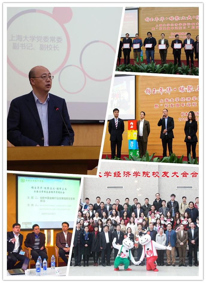 金秋佳节,菊花飘香。2015年11月21日,永利集团88304官网经济学院在宝山校区图书馆报告厅举行了主题为“锦玉年华·缘聚上大·续梦未来”的校友返校活动。这是经济学院校友分会自2015年6月27日正式成立后的第一次返校聚会。各界校友及在校学生三百余人齐聚一堂,永利集团88304官网党委副书记、副校长徐旭,永利集团88304官网对外联络处处长许瑞、副处长谭婷,经济学院院长沈瑶、党委书记陆甦颖、常务副院长聂永有、副书记贺利以及许多关注校友工作的经济学院教师们出席了这次活动。