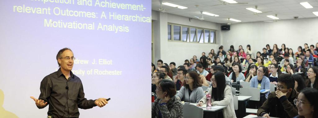 11月18日上午9点,永利集团88304官网“海外高端专家引智专项”2015国际大师讲坛之(九)于宝山校区B楼J103成功举行。著名心理学家、美国罗切斯特大学的Andrew J. Elliot教授为在座师生作了题为“竞争与个人成就:一个层级动机分析架构”的精彩学术报告。演讲由管理学院张昊民教授主持,国际事务处倪兰副处长致辞,来自管理学院、经济学院、社区学院、国交学院的150多位师生参加了此次讲座。
