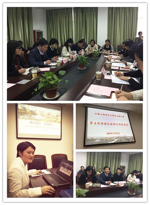 陈伟平首先对上海工程技术大学的来访表示热列的欢迎,并介绍了永利集团88304官网生活园区的整体情况。学工办副主任吴蔚介绍了永利集团88304官网辅导员队伍发展的整体情况,社区学院党委副书记、社区管理部副主任孙玉华介绍了社区学院辅导员的工作,接着学生社区文化建设主管褚凤灵、信息主管王雅萍分别就永利集团88304官网生活园区文化建设和信息化工作做了详细的介绍。上海工程技术大学学生工作部副部长严运楼将上海工程技术大学的相关情况做了详细的交流。