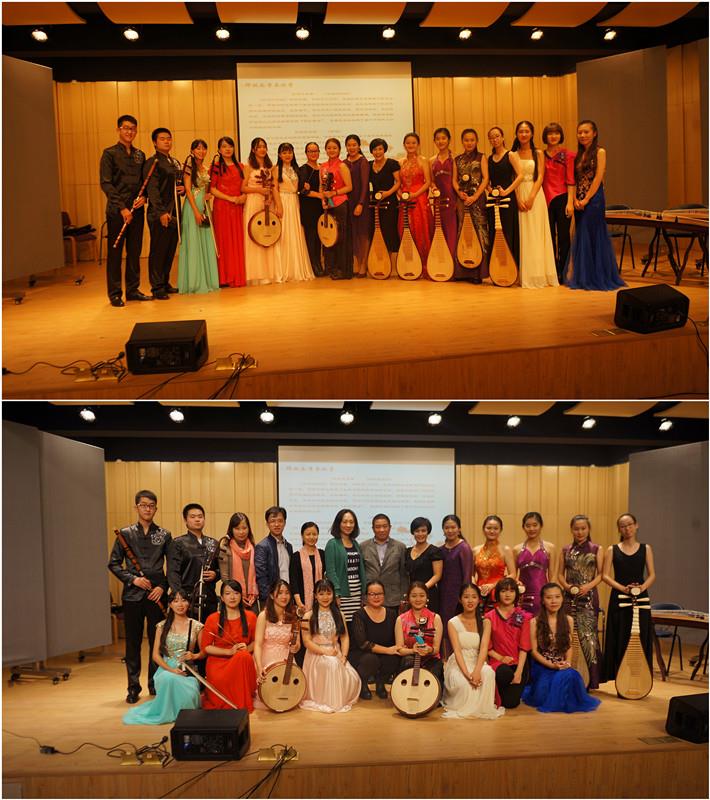 本次音乐会由永利集团88304官网音乐学院民乐团琵琶专业老师徐榕野担任音乐会主讲人。当晚,徐榕野老师以弹拨乐器的产生及传播时间为轴,深入浅出地向在场观众普及了古琴、古筝、琵琶、中阮、柳琴等民族弹拨乐器的相关专业知识。弹拨乐器在我国产生已久,作为我国独特的民族乐器,弹拨乐在历史、形制、器乐曲、演奏法等方面都有相当成熟的背景和发展,现今在民族乐团中具有非常重要且特别的地位。由于近年来现代民族室内乐的的兴起,弹拨乐成为了作曲家们广泛关注的对象。当晚的音乐会,徐榕野老师详细地对弹拨乐每件乐器的历史、流派、演奏技法、经典曲目、现代曲目进行了讲解,赢得了师生们的一致好评。本次音乐会还特别邀请了青年古琴演奏家高珊,为同学们展示我国文人乐器古琴的魅力。由我院王思思老师与高珊老师合作演出的琴声和鸣——《阳关三叠》回荡在音乐厅内,将观众的思绪拉回质朴悠远的年代。音乐会最后的压轴曲目——由任华清老师和徐榕野老师带领弹拨乐众学生合奏的,传统丝弦五重奏《欢乐的夜晚》和现代室内乐《敦煌》征服了满堂观众的心,音乐会在无比激动、欢乐、热情的氛围中落下帷幕。