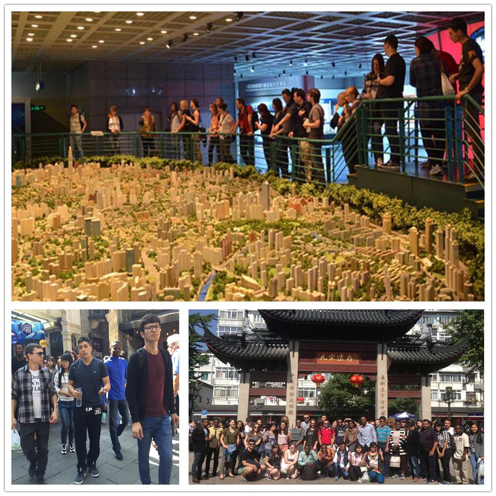 静安寺是上海市著名的真言宗古刹之一,也是上海最古老的佛寺。小组里很多泰国同学非常喜欢这座寺庙,在参观途中纷纷拿出手机和相机拍照,还不时和随行的跨文化交流协会的中国学生交流两国佛教寺庙的异同。此行第二站是上海城市规划展览馆。该馆以“城市、人、环境、发展”为主题,展示了上海城市规划建设发展的成就,让人们知晓城市规划,参与城市规划,架起政府与市民的沟通桥梁。留学生通过上海历史图片展、上海老电影、巨大的上海城市规划沙盘以及现代科技手段展示了上海的昨天、今天与明天。大家对上海这座城市的变迁展现出极大的兴趣,边看边问了解上海城市发展的点点滴滴。下午2点,来到此行第三站——上海博物馆,博物馆里丰富的藏品让留学生十分震撼。
