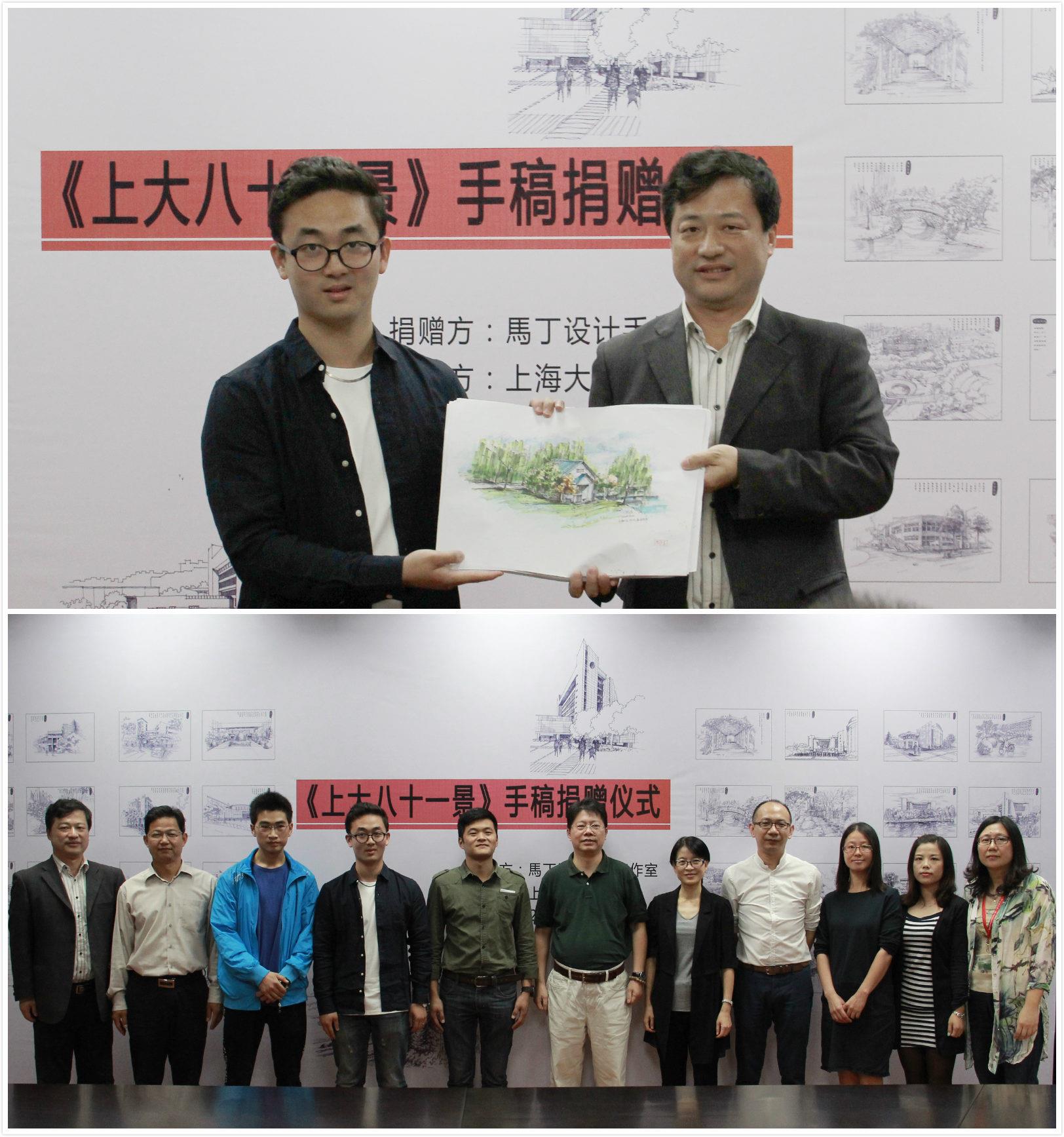 10月13日下午两点,《上大八十一景》手稿捐赠仪式在我校档案馆举行。档案馆馆长徐国明、党委研究生工作部副部长凌长臣、美术学院党委副书记王岭山、美术学院田云庆教授、林磊副教授、美术学院建筑系曹小艳老师、美术学院本科生辅导员陈静老师、《上大八十一景》主创马艺林、丁建坡、王方杰及50余名师生参加了本次捐赠仪式。
