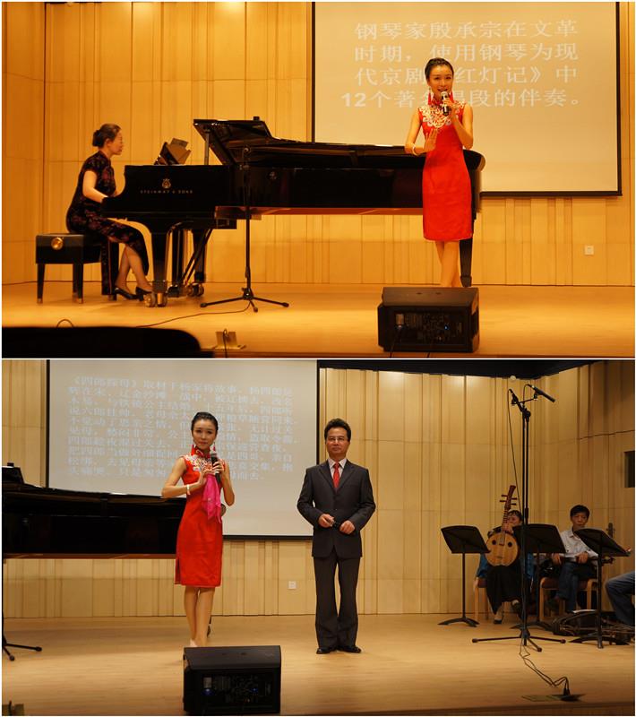 本次音乐会由永利集团88304官网音乐学院主持工作副院长狄其安教授担任音乐会主讲人。当晚,狄其安教授以京剧唱腔着手,深入浅出地向在场观众普及了京剧艺术的相关知识。京剧,亦称平剧,中国五大戏曲剧种之一。腔调以西皮、二黄为主,用胡琴和锣鼓等伴奏,被视为中国国粹,中国戏曲三鼎甲“榜首”。当晚的音乐会,作为永利集团88304官网音乐学院杰出的毕业生,徐洁倩共为母校演绎了13首知名的京剧唱段,由京胡、京二胡、月琴、中阮、鼓和小锣组成的六人小乐队进行伴奏,并邀请了国家二级演员、中国戏剧家协会上海分会会员、上海京剧院余派老生演员庄海顺先生作为演唱嘉宾。