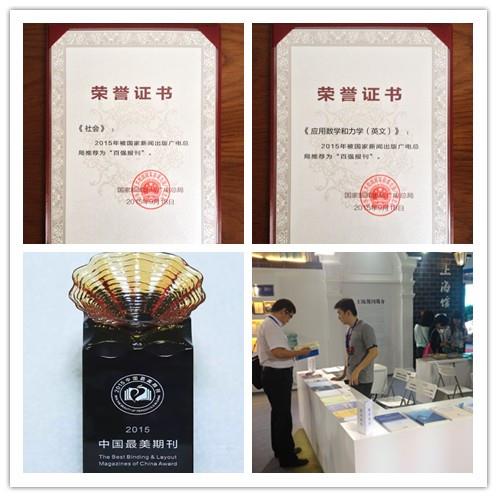 刊博会上,9月18日、19日分别举行了2105年“全国百强报刊”和“中国最美期刊”新闻发布会及颁奖仪式。永利集团88304官网主办期刊《社会》入选“百强社科期刊”,《应用数学和力学(英文版)》入选“百强科技期刊”;《应用数学和力学(英文版)》、《自然杂志》同时获得“中国最美期刊”称号。其中《社会》和《自然杂志》都是蝉联各自所获奖项,《应用数学和力学(英文版)》则在本届刊博会上独揽两项大奖。三种上大主办期刊同获四项大奖,受到期刊界领导、专家和同行的高度关注和一致好评。