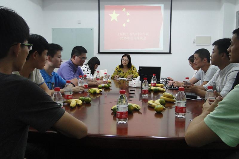 “九一八”应该是所有国人难以忘却的日子,在这样一个特殊的日子里,计算机工程与科学学院为了响应中共中央“积极参军,报效祖国”的伟大号召,于9月18号下午3点在计算机楼513室举行了2015年送兵座谈会,参加会议的人员有:计算机工程与科学学院党委书记郭纯生、党委副书记韩晶、曾经参军的学院教师周时强、刚刚退伍回校的学生高小阳、今年即将参军入伍的同学们以及为他们送行的朋友和其他学生代表等。