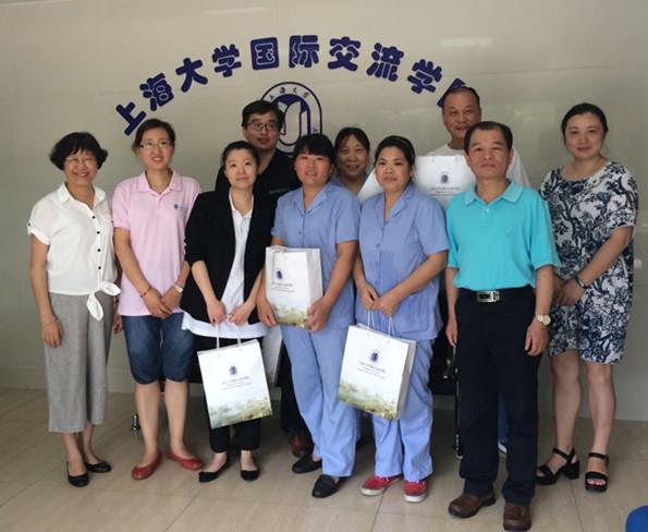 7月13日上午学院党委书记王海燕、副院长杨静、分工会主席丁贵根和工会委员们将慰问品一一送到了在岗当班的几十位教职工手中。从延长校区到宝山校区,从宿舍楼到办公室,一份清凉,一份爱心,传递到了每一个人。他们中有衣裳已被汗水浸湿的保洁阿姨和维修工师傅,有正在忙于接待的宿舍楼前台工作人员,有刚入职的办公室新生力量,还有早已对假期加班习以为常的“老行政”。