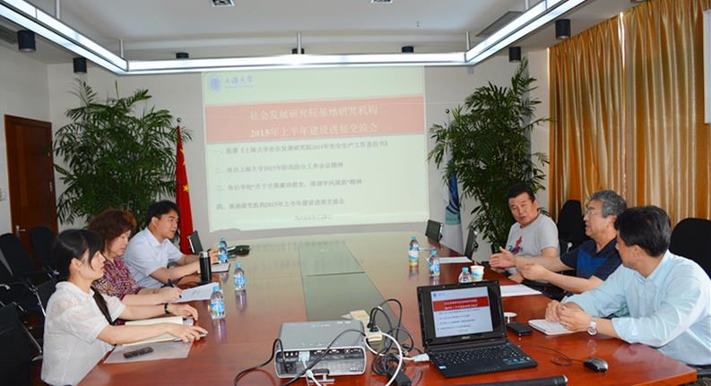 2015年6月29日下午, 社会发展研究院基地研究机构上半年建设进展交流会在E楼608会议室召开。社会发展研究院行政团队,中国艺术产业研究院、上海合作组织公共外交研究院、上海会展研究院等三家文科研究机构的负责人出席了会议。会议由社会发展研究院院长张恒龙主持。