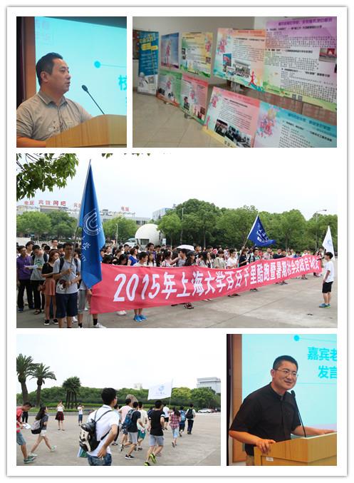 6月23日,2015年永利集团88304官网百日千里酷跑暨暑期社会实践启动仪式在宝山校区举行。校党委宣传部部长李坚、校团委书记、学工办副主任许烁、《瞭望东方周刊》主任编辑黄琳、校招毕办王平老师以及各学院的团学干部、社会实践团成员近200人参加了此次活动。