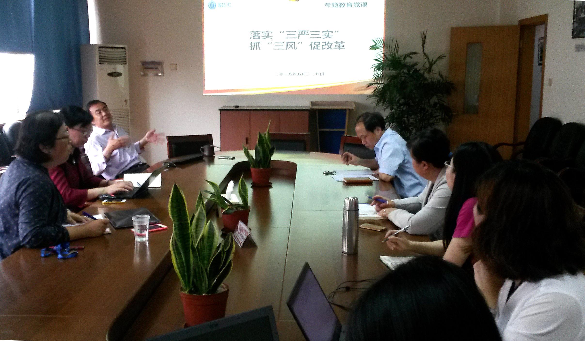 5月29日下午,悉尼工商学院举行“三严三实”专题教育党课学习,学院党委书记李双以《落实“三严三实”,抓“三风”促改革》为主题,为学院各系、各部门中层以上干部上党课,学院党委委员出席。