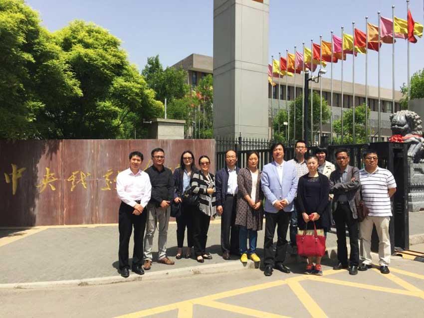 在中国传媒大学,副校长袁军教授,学科办主任王宁,人事处处长夏丹,教务处副处长许一新,发展规划办副主任庞亮,艺术影视学院导演系主任刘书亮及各院系负责人迎接代表团一行。楚丹琪处长和徐伟主任询问了传媒大学专业设备采购和艺术专业信息化管理的基本情况。程波教授与专业教师探讨了MFA特色培养方式问题。代表团一行还参观了传媒大学教学实践基地传媒大学电视台、两千平米的演播厅和传媒大学旗下高科技产业化公司蓝海彤翔。