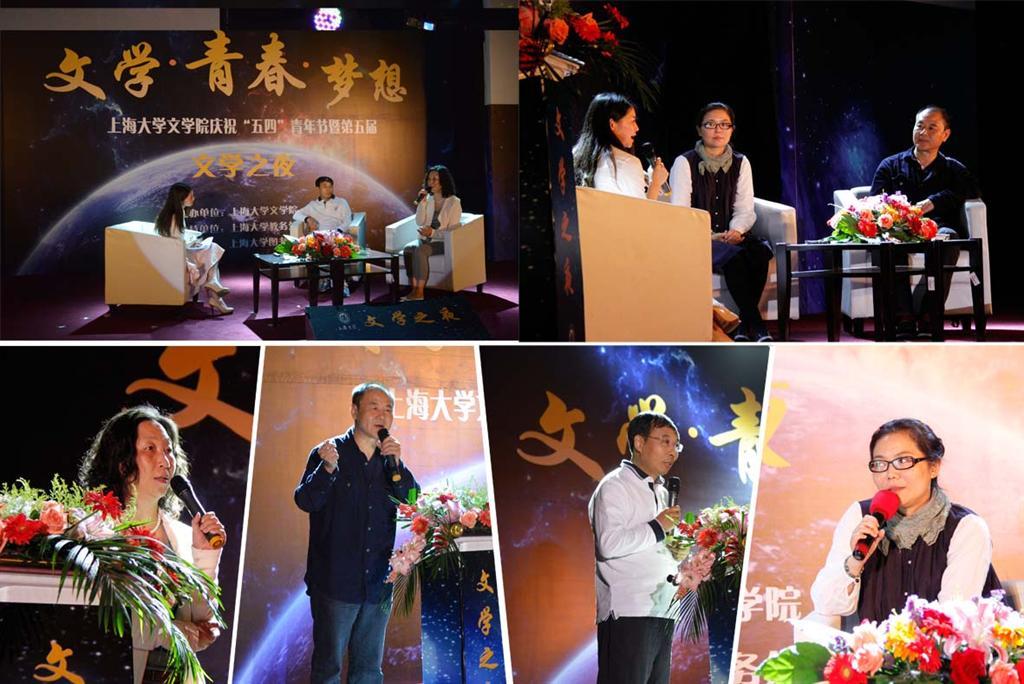 5月5日晚,以“文学·青春·梦想”为主题的永利集团88304官网文学院庆祝“五四”青年节暨第五届“文学之夜”在校本部图书馆报告厅隆重举行。此次活动邀请到中国当代著名诗人王家新、《战国纵横:鬼谷子的局》等书的作者寒川子、当代都市文化的代言人陈丹燕、著名小说家魏微走进校园,讲述他们的青春故事,展示文学与青春、梦想碰撞的魅力。当晚,教务处处长王光东,学工办主任胡大伟,宣传部副部长、文明办主任刘绍学,团委书记许烁,图书馆党总支书记刘日宇,图书馆常务副馆长陆铭,图书馆副馆长刘华、卢志国,文学院党委书记竺剑,文学院党委副书记王丽娜,文学院常务副院长张勇安,文学院副院长曾军,文学院蔡翔教授也出席了此次活动。文学院吕永林老师、文学院11级学生吴思璇担任主持。晚会现场座无虚席,全场师生共享这场文学盛宴。