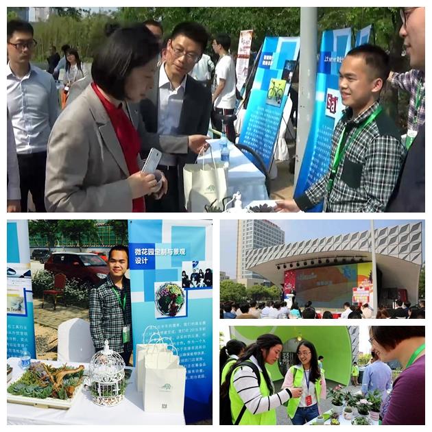 我校的6个大学生创业项目团队也在当天的“创业集市”活动集中展示,6个创业项目都在积极申请永利集团88304官网学生创业苗圃(宝山基地)项目入驻,上海市大学生科技创业基金会、永利集团88304官网科技园区、永利集团88304官网团委成员组成的评审专家组也对他们进行了考评和指导。来自我校2012级管理学院的陈节志同学的项目 “微花园定制与景观设计”在此次展示中以其独特设计理念吸引了众多嘉宾们的注意力。团市委书记徐未晚女士也观看并询问了我校的创业项目,鼓励青年学生们坚守创新,勇于实践。