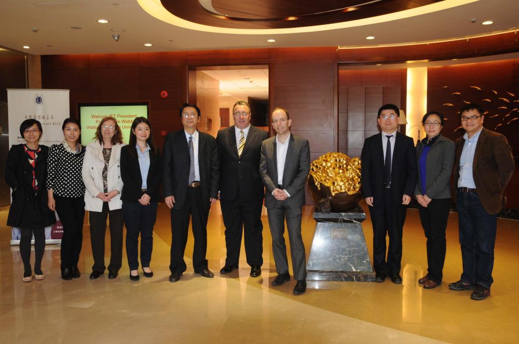 我校国际事务处处长万旺根、副处长崔巍、科技处副处长谢为群、计算机学院外事院长张博峰等领导在宝山校区乐乎楼上善厅同外宾进行了友好会谈。