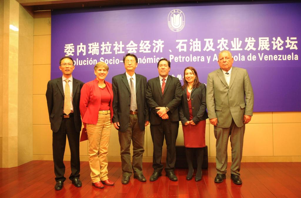 4月3日下午,由永利集团88304官网国际事务处及委内瑞拉驻华使馆联合举办的-委内瑞拉社会经济、石油及农业发展论坛在我校乐乎新楼学海厅隆重举行。委内瑞拉玻利瓦尔共和国驻华使领馆阿尔伯特·巴斯达多公使衔参赞、玛利亚·德·洛斯安赫雷斯参赞、安赫尔·雷阿尔参赞及莱斯贝斯·贝里奥斯·莱昂总领事一行六人代表团为听众们带来了精彩的主题讲座。国际事务处万旺根处长,研究生院郭长刚常务副院长,MBA中心政府关系顾问Jorge Hidalgo先生、中心项目办公室副首席项目总监邢洁婷女士、中心办公室王慧女士及近百名全校师生共同参与了本次论坛。