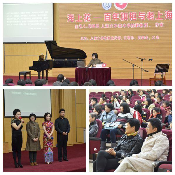 12月12日下午,由永利集团88304官网党委宣传部、文明办、妇委会、工会邀请,永利集团88304官网美术学院副教授、作家胡建君走进“东方讲坛”,在图书馆报告厅为我校师生作了“海上花•百年旗袍与老上海”的讲座。