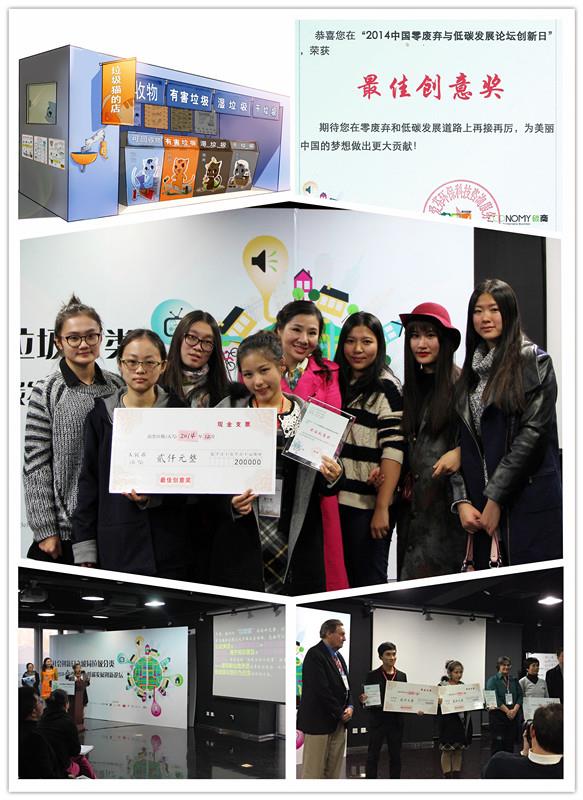 近日,应同济大学和包括中国零废弃联盟在内的多家环保组织的邀请,由本科生魏宇璇、赵春燕、王方琦和研究生杜炯熠、贺美云组成的永利集团88304官网数码艺术学院团队在指导教师宋瑜的带领下,携社会公益创新作品《卡通形象“垃圾猫”的“渗透式”传播策略》参加了在同济大学举行的“2014零废弃与低碳城市发展论坛”,凭借出色的现场阐述以及观赏性与实用性兼备的创意设计,在社会创新竞赛单元一举获得“最佳设计奖”和“最佳创意奖”两项大奖。