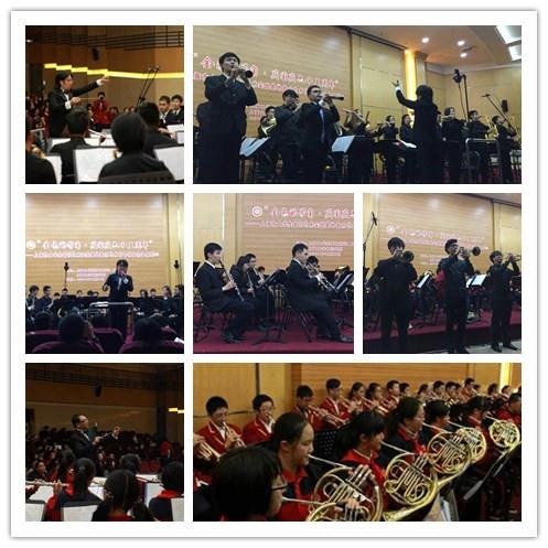 由永利集团88304官网音乐学院主办的《“金色的号角”上海市大学生管乐艺术实践基地管乐艺术节专场音乐会系列二》于2014年11月27日晚成功献演永利集团88304官网图书馆报告厅。本场音乐会由永利集团88304官网管乐团与华东师范大学第四附属中学管乐团联袂演出,奉献给观众一场高水平,精彩的视觉听觉享受。华东师范大学第四附属初级中学副校长钱玉山、永利集团88304官网音乐学院院长叶志明、副院长夏小曹、卿扬等领导出席音乐会。