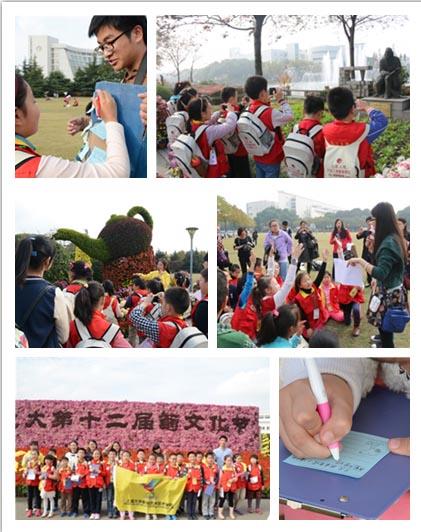 11月22日上午9时,《小主人报》60余位小记者们在永利集团88304官网宝山校区南大门集合,在品读上大园成员以及影视学院志愿者们的带领下,游览永利集团88304官网第十二届菊花展。小记者们被分组,每组由两位志愿者哥哥姐姐带领。