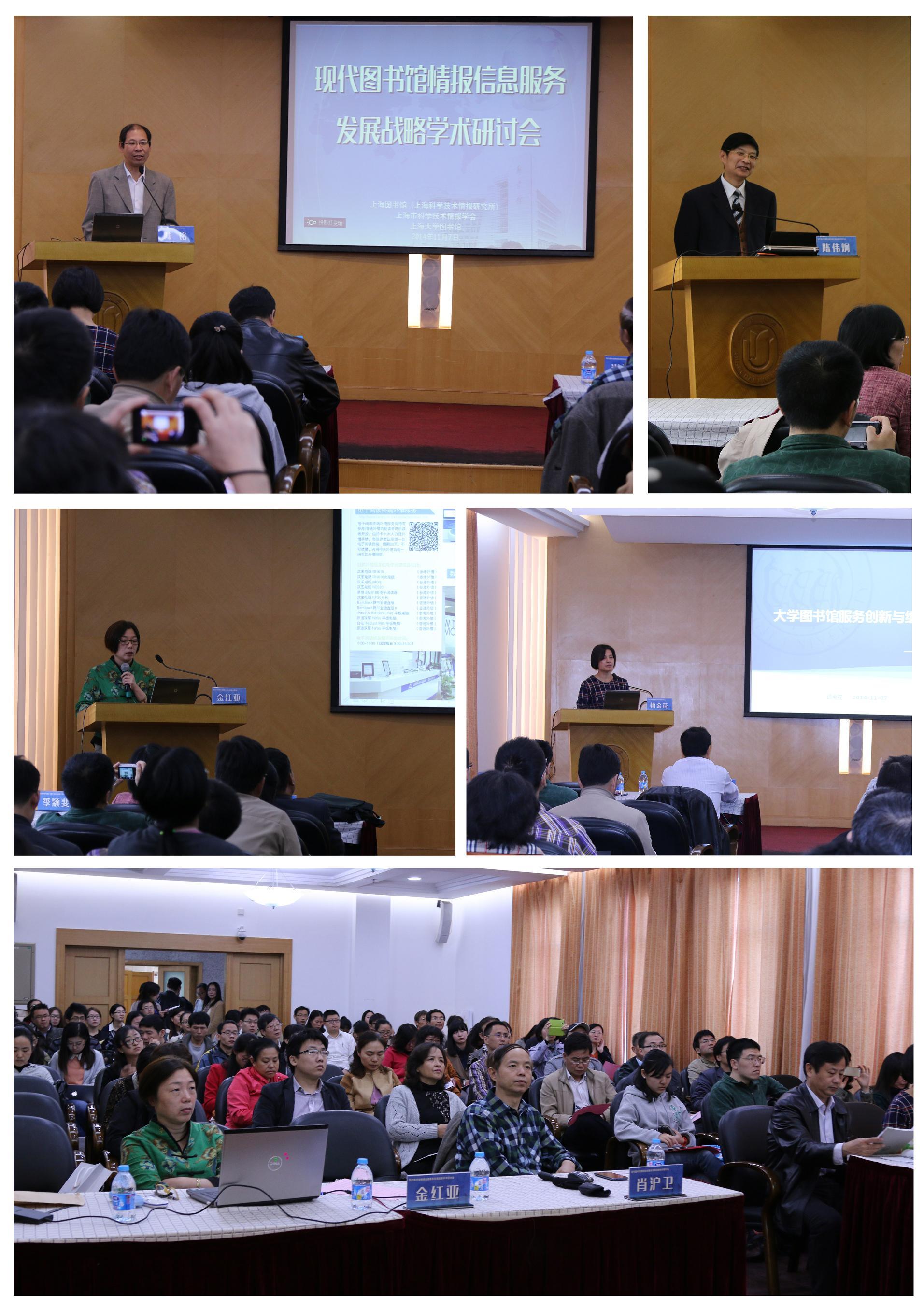 2014年11月7日,由上海图书馆(上海科学技术情报研究所)、上海市科学技术情报学会主办、永利集团88304官网图书馆承办的“现代图书馆情报信息服务发展战略学术研讨会”在永利集团88304官网校本部图书馆二楼顺利召开,研讨会以“图书馆情报信息服务:转型、发展与创新”为主题,系统研讨“情报信息服务与大学图书馆内涵发展、技术驱动与智慧图书馆服务、空间塑造与图书馆功能转型”等图书馆情报信息服务前沿课题。