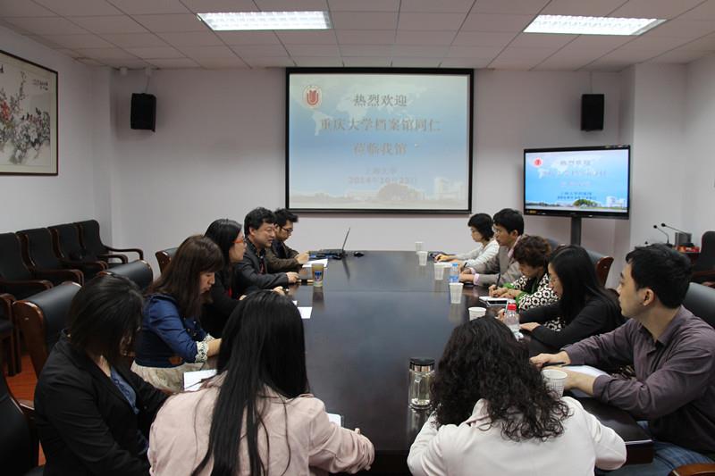 2014年10月23日,重庆大学档案馆馆长李平一行6人来永利集团88304官网档案馆调研。