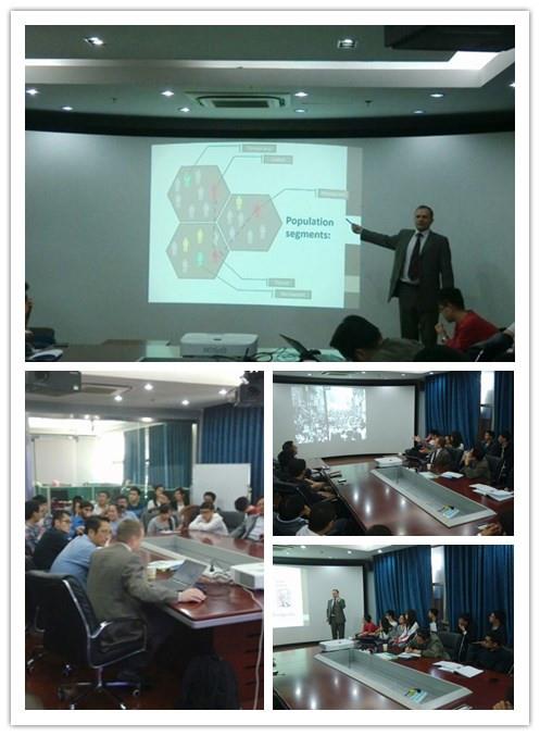 Rein Ahas教授的报告生动地讲述了基于移动定位的城市研究方法及如何将通过移动手机获得的大数据,与数据科学、计算机科学、社会学研究、以及地理科学研究结合起来,更好地定位和分析城市人群流动、城市不同属性人口分布、及城市群体行为状况,讲座令在座的师生感受颇深。与大家分享知识、经验的同时,Rein教授还和现场听众开展了热烈的学术讨论,对上大师生们提出的问题耐心地一一解答,给予指导性建议,报告会洋溢着浓郁的学术氛围。社会学院黄浩教授与Rein教授进行了交流,就塔尔图大学在社会数据的获取、研究成果的应用等方面进行了讨论。万旺根教授也与Rein教授进行了探讨交流,就进一步双边的学术互访、学生互派、教师互派、联合发表学术论文、以及进一步的联合研究基金的申请等,进行了深入讨论和交流。在研究生互派、共同申请欧盟智慧城市相关科研项目、以及共同举办国际会议方面达成共识,并将于2015年付诸实施。