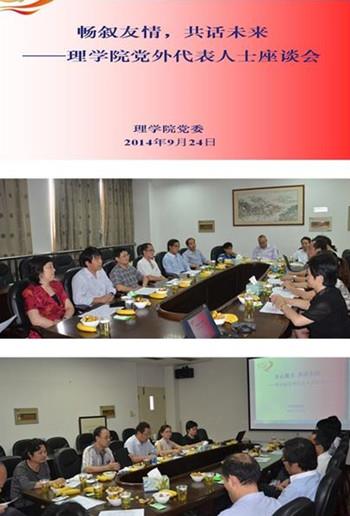 9月24日上午,理学院党政班子成员及来自学院各系所民主党派、无党派人士、归侨侨眷、留学归国人员、中青年党外后备人才及专业技术骨干的党外人士代表近20人欢聚一堂,喜迎国庆,畅叙友情,共话未来。校统战部部长李红应邀出席,座谈会由学院党委副书记王东媛主持。