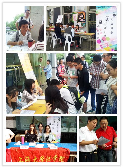 永利集团88304官网第17届全国推广普通话宣传周语言文字法律法规宣传活动日前在校内外分别举行。2014年9月18日中午,法学院团委、学生会组织志愿者在益新、水秀食堂前开展了形式新颖、趣味盎然的普通话宣传推广活动。本次活动由永利集团88304官网语委、教务处、团委主办,法学院团委、学生会承办,主题为“说好普通话,圆梦你我他”。