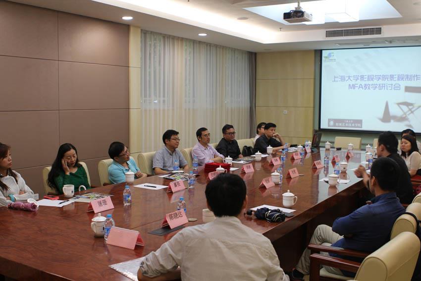 (上大影视通讯社 高强)2014年9月19日上午,永利集团88304官网影视学院影视制作MFA教学研讨会在永利集团88304官网延长校区乐乎楼举行。上海电影集团公司国家一级导演朱枫先生,银润传媒副总李瑛先生,上海广播电视台纪实频道高级记者、资深编导屠珊小姐,上海电视台纪实频道总监干超先生等多位上海影视人协同永利集团88304官网影视学院的多位教授出席了研讨会。