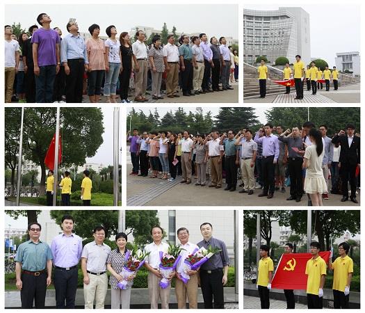 2014年7月1日上午七点,永利集团88304官网材料科学与工程学院在校图书馆升旗台隆重举行以“重温入党誓言,坚定理想信念,党建带动团建,服务学校发展”为主题的“七一”升旗仪式暨材料学院2014学年团学干部培训班开班仪式。永利集团88304官网学生工作办公室主任王军华,永利集团88304官网党委组织部副部长、团委书记胡大伟,永利集团88304官网材料学院党委书记、院长张捷宇,材料学院原院长夏义本,材料学院原党委书记、永利集团88304官网特邀党建组织员李祖齐,材料学院原党委副书记、永利集团88304官网直属机关党委书记陆翠兰,材料学院党委常务副书记周路海,材料学院教工党员代表席慧霞、刘文庆、夏爽、颜莉莉、雷芳、耿淑华、俞成丙和材料学院所有团学干部以及2013级全体新生参加了本次活动。
