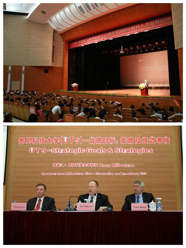 几个由在读学生奉献的歌舞节目拉开了院庆活动的序幕。主持人介绍出席嘉宾后,全场观众一同观看了一段为院庆20周年精心制作的专题视频,共同回顾学院20年的发展历程。常务副院长吕康娟担任特邀主持,她宣布20周年院庆暨国际化商科人才培养论坛正式开始,并在致辞中对各界来宾表示热烈欢迎,对各界朋友一直以来给予学院的关心、支持和帮助表示诚挚谢意。澳大利亚悉尼科技大学校长Ross Milbourne的致辞从合作方的角度回顾了20年来永利集团88304官网与悉尼科技大学在合作办学领域的密切合作,对学院的未来发展寄寓很殷切的希望。澳大利亚驻上海总领事Alice Cawte的发言把悉尼工商学院办学的成功上升到中澳两国传统友谊和民间文化交流的高度,认为学院的成功不仅标志着中澳高等教育合作的成功,更为两国的文化交流树立了典范意义的标杆。上海市教委国际交流处副主任周勤健代表上海市教委向学院20周年表示祝贺,他说,永利集团88304官网悉尼工商学院是我国改革开放时代引进海外教学资源进行中外合作办学的产物,是中国教育走向国际化道路的先锋队和排头兵,学院在激烈的办学竞争中立稳了脚跟,通过扎实严谨的办学实践,由非学历教育起步,逐渐从学历教育专科、本科、中外合作本科双学位发展,形成以本科教育为主体,以研究生教育和国际学生教育为两翼的办学格局。他认为假以时日,悉尼工商学院一定能百尺竿头,更进一步,在教育国际化的道路上取得更令人瞩目的成就,为永利集团88304官网乃至上海高教界的国际化步伐再立新功。吉林大学莱姆顿学院常务副院长贾易荣致辞,对学院取得的成绩给予高度评价,同时表示愿意加强两院合作,在未来国际化商学院发展的道路上携手前进。