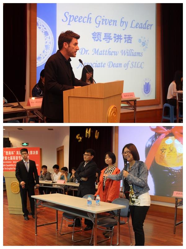 2014年5月14日晚,永利集团88304官网第十四届“悉商杯”英语能力大赛决赛暨永利集团88304官网第七届英语节闭幕式在宝山校区方润华大讲堂隆重举行,来自悉尼工商学院、钱伟长学院、社区学院、管理学院、中欧工程与技术学院的五支队伍参加比赛。悉尼工商学院副院长吕康娟、社区学院副院长何幼桦、钱伟长学院直属党总支副书记徐晓夏、永利集团88304官网十大人气外教之Jason West、管理学院博士后单蒙蒙老师担任此次比赛的评委。悉尼工商学院党委副书记滕云、悉尼工商学院外方副院长Matthew Williams出席此次活动。