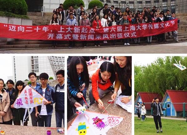 随着泮池上空一个个“纸鸢”的随风舞动,新闻采风的各个小组们带着各自小组自创的风筝,预示着他们开始了“迈向二十年,上大新起点”的新闻采风活动,同时也预告着第六届传媒文化节正式开始。