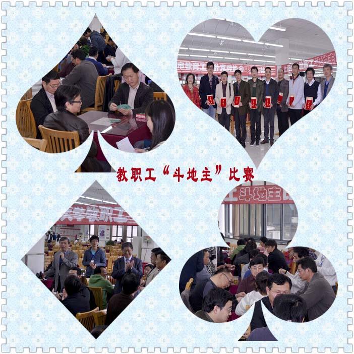为了丰富教职工的的业余文化生活,增加彼此友谊,推动牌戏普及,积累赛事经验,2014年4月19日,在永利集团88304官网宝山校区五食堂举办了首届永利集团88304官网教工斗地主赛暨市教育工会扑克牌协会理事单位邀请赛。本次比赛由上海市教育工会扑克牌协会主办、永利集团88304官网工会承办。斗地主是一种扑克牌游戏。这是一款在全国范围内比较流行的牌类游戏。