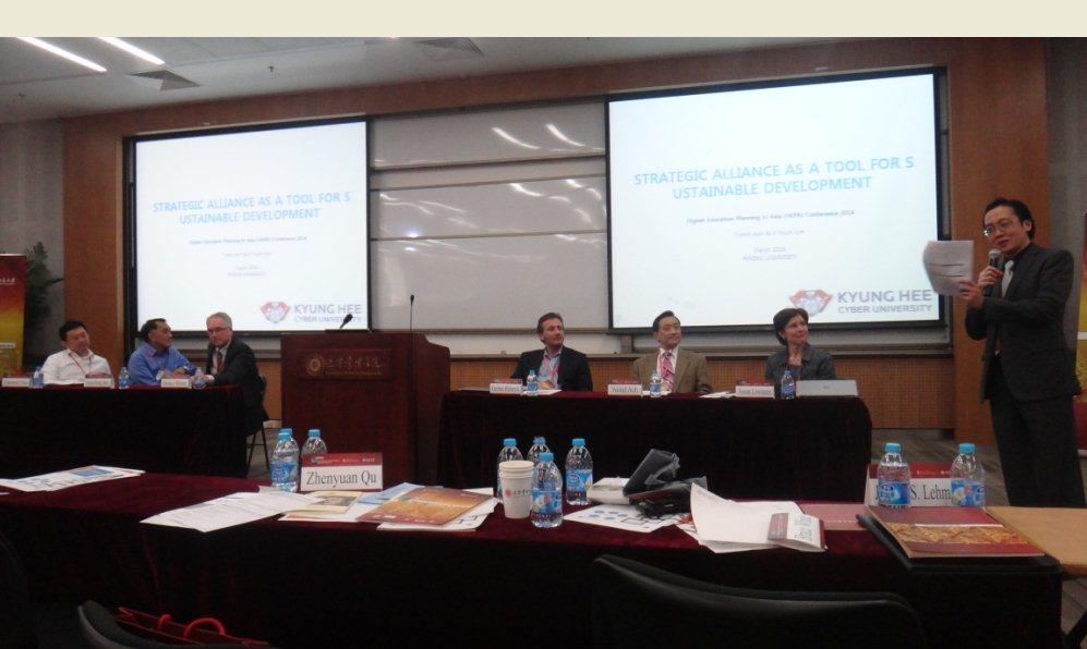 2014年3月25日-3月27日,2014亚洲高等教育规划国际会议(以下简称HEPA)在北京大学光华管理学院举办。会议由北京大学和香港科技大学共同主办,邀请了来自澳大利亚新南威尔士大学、国立新加坡大学、南洋理工大学、韩国中央大学、庆熙大学、俄国远东联邦大学、马来亚大学、澳门大学、复旦大学、浙江大学、中国科技大学、山东大学、上海交通大学、同济大学等40多所国内外知名院校的知名学者教授、主管规划工作的部门负责人、及业内专家120余人参加了会议。永利集团88304官网应北京大学规划处的邀请,由学科建设办公室张世萍、周洋洋参加了此次HEPA会议。