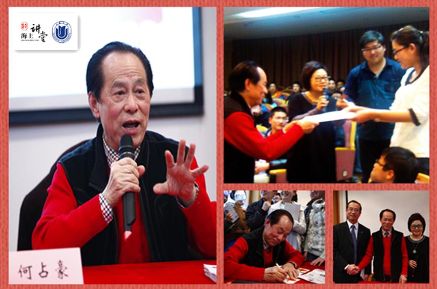 3月23日晚18:30,中国杰出的音乐家、世界著名作曲家、上海音乐学院教授、上海音乐家协会副主席何占豪先生在永利集团88304官网宝山校区J201为上大师生作“别亦难 蝴蝶梦”讲座。已届81岁高龄的何先生精神矍铄、声情并茂地讲解小提琴协奏曲《梁山伯与祝英台》的创作趣事,使师生们在聆听名曲的同时进一步加深了对曲目的理解与感受。2个小时的讲座中,不少师生多次眼眶湿润,纷纷感慨:以前对《梁祝》这首名曲的了解可能仅限于“听说过”和“听过”,但听到大师的解析后,感动于《梁祝》那动人旋律下的凄美爱情故事,也为何先生能植根于我国优秀民族音乐而创作出如此优秀的音乐作品所折服,更为我们祖国拥有如此丰富的优秀民族文化资源而感到自豪。