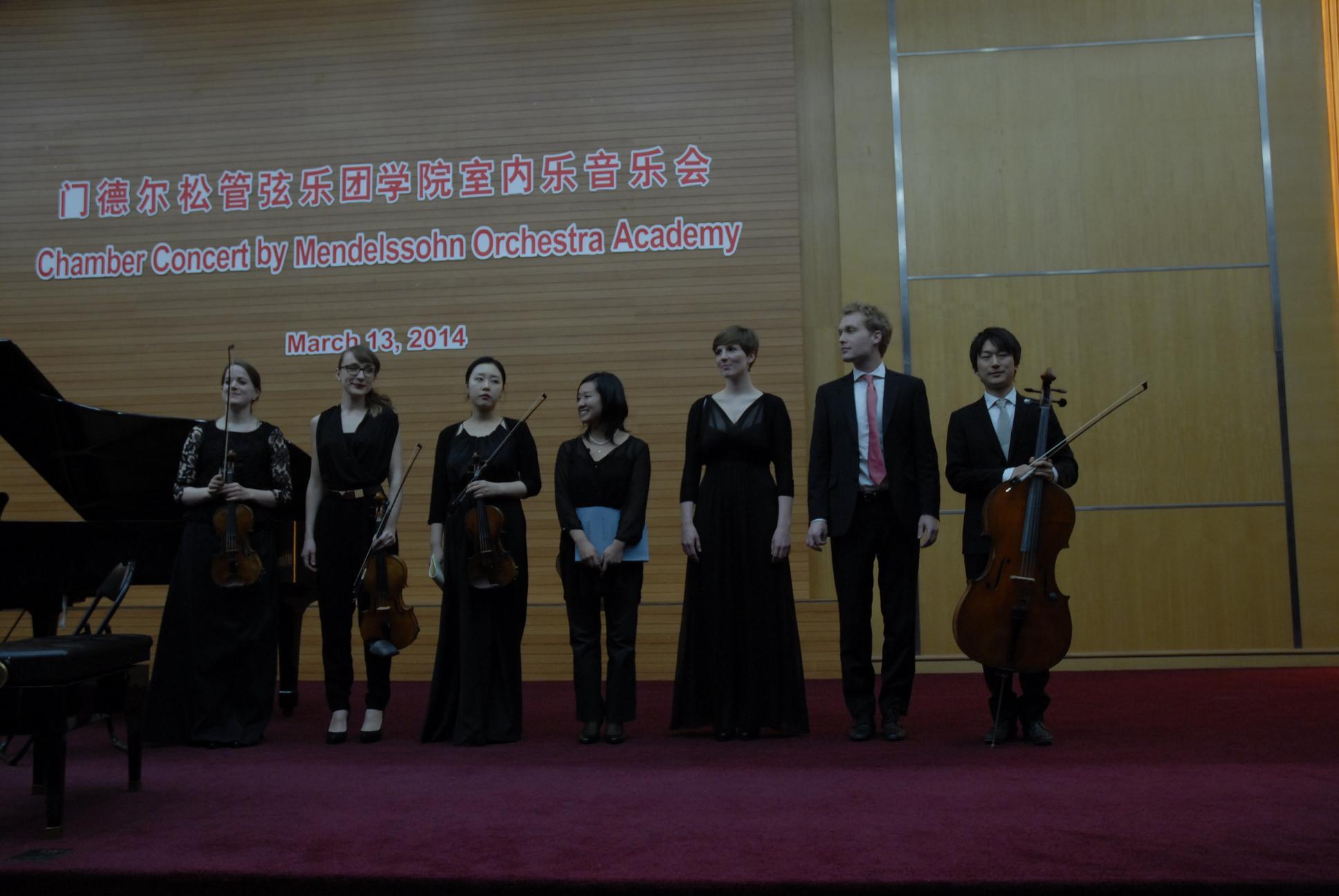 应永利集团88304官网音乐学院的邀请,世界上久负盛名的门德尔松管弦乐团学院的部分演奏家于昨晚访问我校,并在我校图书馆报告厅举办专场室内乐音乐会。这也是这支古老的乐团首次走入上海高校进行室内乐演出。永利集团88304官网副校长、音乐学院院长叶志明,音乐学院副院长、艺术总监夏小曹教授,音乐学院副院长卿扬等领导出席了音乐会。