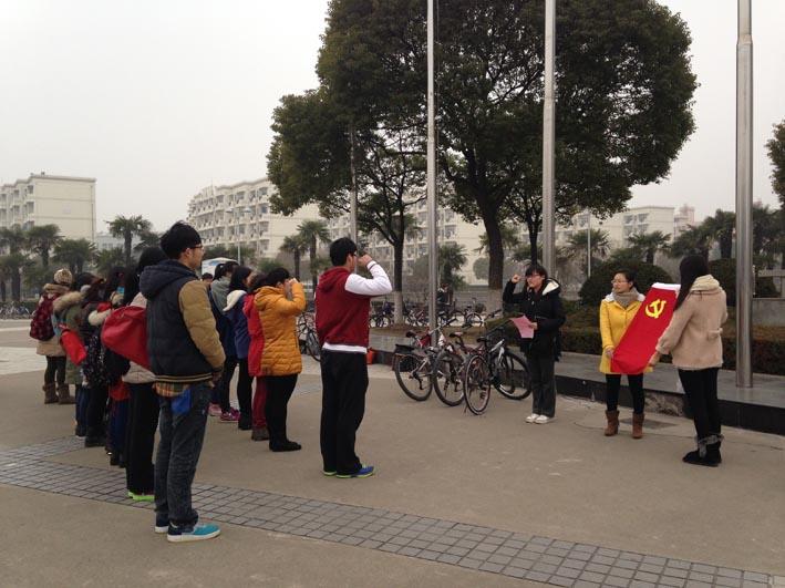 2014年2月24日早上7时30分,永利集团88304官网影视艺术技术学院学生会与12级学生党支部共同策划了一次在图书馆前集体升旗仪式,及预备党员宣誓活动。参加本次活动的有影视艺术技术学院党组织员徐芬芳老师、6名预备党员和部分入党积极分子。这天天气阴冷,却丝毫没有阻挡大家的热情。级学生党支部成员率领积极分子,与学生会升旗同学一起,在图书馆前进行了庄重的升旗仪式。接着进行了庄重的入党宣誓仪式,每一位预备党员都右手握拳,12届党支部的杨鸽同学作为领誓人,一字一句地跟着说出坚定的誓言。