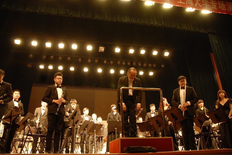 成立于20世纪80年代的上海音乐学院交响管乐团,是上海目前唯一一支具有职业艺术水准的青年交响管乐团,乐团得到过国内外许多著名音乐家的指导。音乐会现场,在国家一级指挥林友声教授的执棒下乐团演奏了多首经典和流行的交响管乐作品,如《波斯序曲》、《康定情歌》、《号角曲》、第一交响曲《神圣的戏剧》等。作为上海歌剧院常任指挥同时也是永利集团88304官网兼职教授,林友声老师不仅为现场师生详细的讲解每首曲目表达的含义、创作背景,并详细的介绍交响管乐团中各种乐器的配器。林友声教授幽默的讲解不时激起现场观众的笑声和掌声。