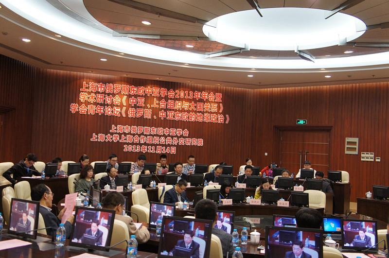 2013年11月14日上午,由上海市俄罗斯东欧中亚学会和永利集团88304官网上海合作组织公共外交研究院联合主办的上海市俄罗斯东欧中亚学会2013年学术年会暨学术研讨会《中亚、上合组织与大国关系》在永利集团88304官网宝山校区国际会议中心举行。上海市俄罗斯东欧中亚学会会长、华东师范大学副校长范军,学会秘书长、同济大学中东欧研究所所长杨烨,上海社会科学院欧亚研究所学术委员会主任余建华,永利集团88304官网党委副书记忻平,校长助理、上海合作组织公共外交研究院院长李伟,永利集团88304官网国际交流学院院长、乌兹别克斯坦研究与教育交流中心主任姚喜明,社会发展研究院院长张恒龙,公共外交研究院副院长张丹华等校内外领导出席会议。来自华东师范大学、上海社科院、上海国际问题研究院、复旦大学、上海外国语大学、上海政法学院、上海市社会科学界联合会、永利集团88304官网等上海高校和科研院所的30余位俄罗斯东欧中亚问题研究学者、《中国社会科学报》等媒体代表受邀出席会议,逾40名上海高校的博士生、硕士生代表列席会议。