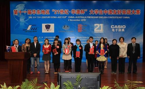 11月2日下午,第十一届华东地区“21世纪•华澳杯”大学生中澳友好英语大赛在永利集团88304官网嘉定校区行健文体中心圆满落幕。