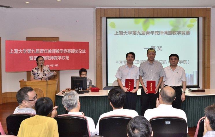 9月24日上午,永利集团88304官网第九届青年教师课堂教学竞赛颁奖仪式暨第五期教师教学沙龙在J103隆重举行。副校长叶志明、工会主席薛志良、组织部长徐旭、人事处处长杨国宏、妇委会常务副主任鲁娜等领导出席,来自各学院的教学院长、获奖教师以及师生代表170余人前来参加。大会由教务处副处长顾晓英主持。